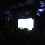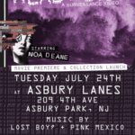 It was “Head Noise”, Noa Deane’s newest surf flick on Asbury Lanes’ big screen. There were two big bars, the beer/ liquor was flowing, and the crowd was STOKED. A DJ played while new t-shirts were tossed out, and as moviegoers boogied in their bowling kicks.
