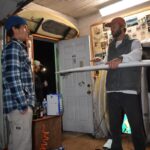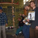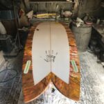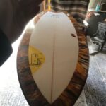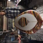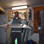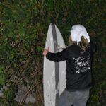 We carried on as if the cops didn’t just blow up our spot. One of the band members asked if he could, “maybe just get one more song man, I don’t wanna go out like that.” “Nooo, no, no, no, no [laughing],” I said. “Let’s chill man, we’re gonna raffle off that board.” And we did. The board went to a mystery ticket that someone (maybe it was Haze Rainis) lost. As that board slipped through the unlucky raffler’s fingertips, the next ticket was called. “That’s me,” said Andrew Moon. We cheered, got photos, and all went into the shed to look at the masterpiece of a twin-fin.