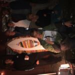 After runs to the dump, manly bouts of wood chopping, sanding, buffing, glossing, marketing, and party favor buying, it was Saturday October, 20th–time to boogie. Friends drove in from all directions and sleeping arrangements turned from couches to pitching tents at the Tak compound. Five o’ clock rolled around and the first partygoers appeared. A band called More Or Less set up as soon as the party began (thanks to my rad neighbor, Brian) and by 6pm they were jamming out, playing Grateful Dead, Phish, and other corresponding tunes. The vibe was mellow as people walked in, paying $5 for magazines and $5 for the Tak board raffle.