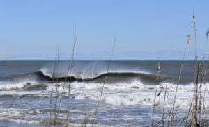 The large crew dwindled to just three: Jameson, Pat, and Ryan drove South into a Nor’Easter that would shut down the island of Hatteras, block roadways, and sadly tear down (I believe six) houses in less than three days. The fellas stranded themselves in the “Graveyard of the Atlantic.” By the second day of 35+ knot gusts and 15+ foot buoys, they wondered why.