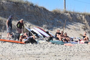 The boys surfed till there wasn’t any swell left, and they went North. However, the crew that stayed, and the new arrivals didn’t have to wait long for another crack at decent swell. The Knolls, Hollins, Mitch, XL, Claude, and Jared were joined by Seany, Dom, and each person’s significant other, dogs, etc. The party tipped the OBX scales, and their end of the island began sinking due to its might.